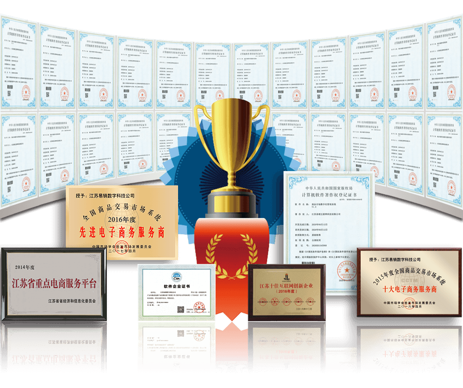 江蘇易銷互聯(lián)網(wǎng)科技公司是中國五金交電化工商業(yè)協(xié)會(huì)互聯(lián)網(wǎng)專業(yè)委員會(huì)會(huì)長單位、江蘇省浙江商會(huì)互聯(lián)網(wǎng)專業(yè)委員會(huì)會(huì)長單位、江蘇省互聯(lián)網(wǎng)服務(wù)學(xué)會(huì)副理事長單位,榮獲“全國商品交易市場系統(tǒng)十大電商服務(wù)商”、“全國商品交易市場系統(tǒng)先進(jìn)電商服務(wù)商”、“江蘇十佳互聯(lián)網(wǎng)創(chuàng)新企業(yè)”、“年度電子商務(wù)示范企業(yè)”。